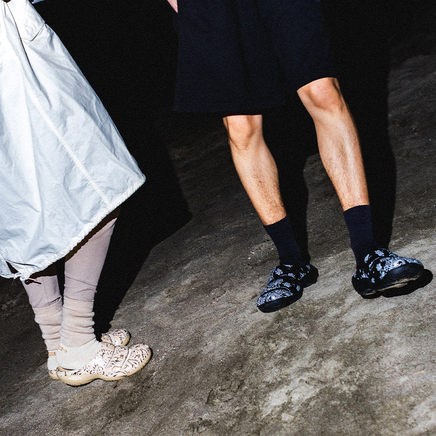 Like champagne in a camp mug. this lightweight women’s clog is the effervescent hero of the day. Celebrated with a vintage bandana pattern from fashion brand Hide and Seek.